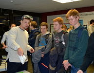 Einen besonders schönen Überblick über die Forschungstätigkeiten am Department bietet die „Messe“ im Anschluss an die Vorträge, auf der jeder Lehrstuhl mit einem eigenen Stand vertreten ist. Die wissenschaftlichen Mitarbeiter präsentieren aber nicht nur Aktuelles aus ihren Lehrstühlen, sondern stehen den Schülern auch für Rückfragen und Gespräche zur Verfügung.